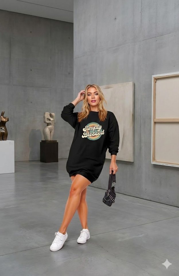 Kadın Uzun Kollu Bisiklet Yaka Yazılı Viskon Iki Iplik Elbise Modelin Ölçüleri: Boy:165, Kg:55, Göğüs:90, Bel:72, Kalça: 100 Modelin üzerindeki ürün M/38 bedendir
