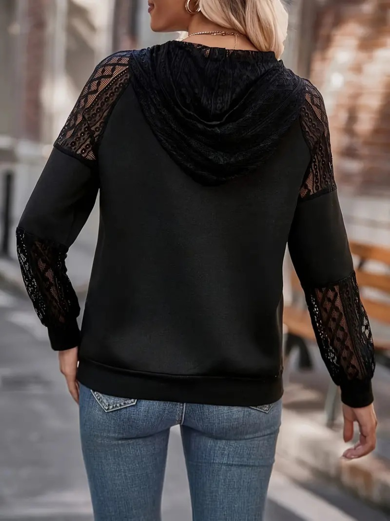 Kadın Uzun Kollu Dantelli Kapşonlu Viskon Iki Iplik Bluz
