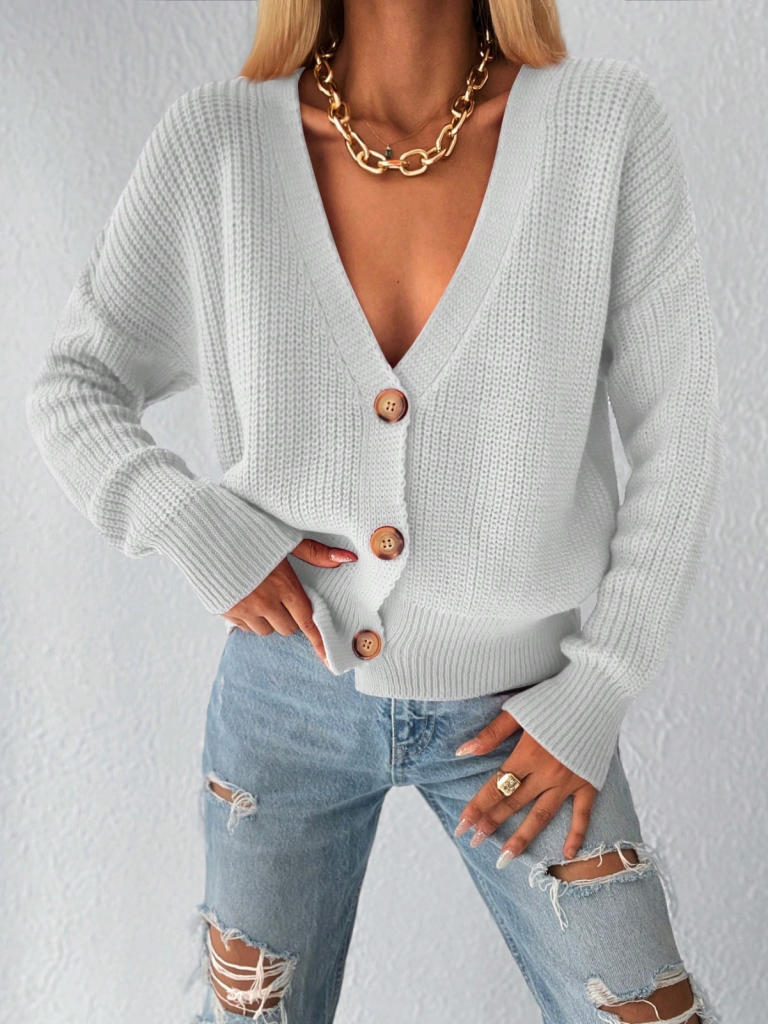 Kadın Uzun Kollu Düğme Detay Triko Bluz Modelin Ölçüleri: Boy:165, Kg:55, Göğüs:90, Bel:72, Kalça: 100 Modelin üzerindeki ürün M/38 bedendir DESEN-DiğerleriKALIP-Klasik