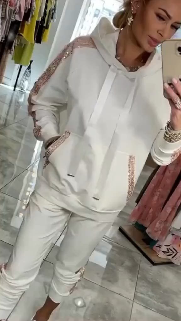 Kadın Uzun Kollu Kapşonlu Pulpayet Detay Viskon Iki Iplik Bluz Ve Pantolon Ikili Takım Modelin Ölçüleri: Boy:165, Kg:55, Göğüs:90, Bel:72, Kalça: 100 Modelin üzerindeki ürün M/38 bedendir KOL UZUNLUK-Uzun KolTAKIM…
