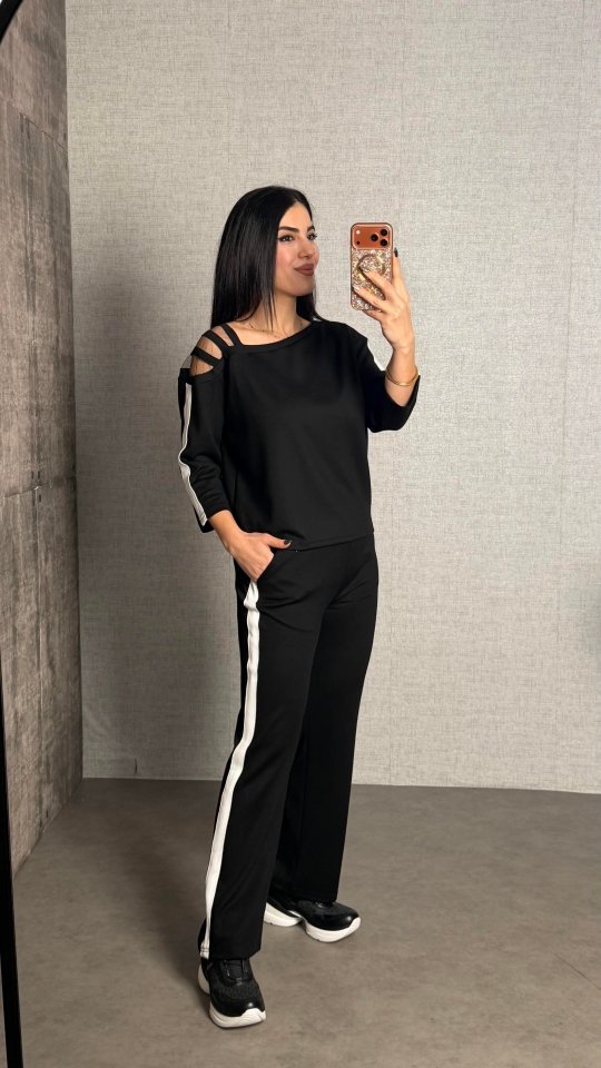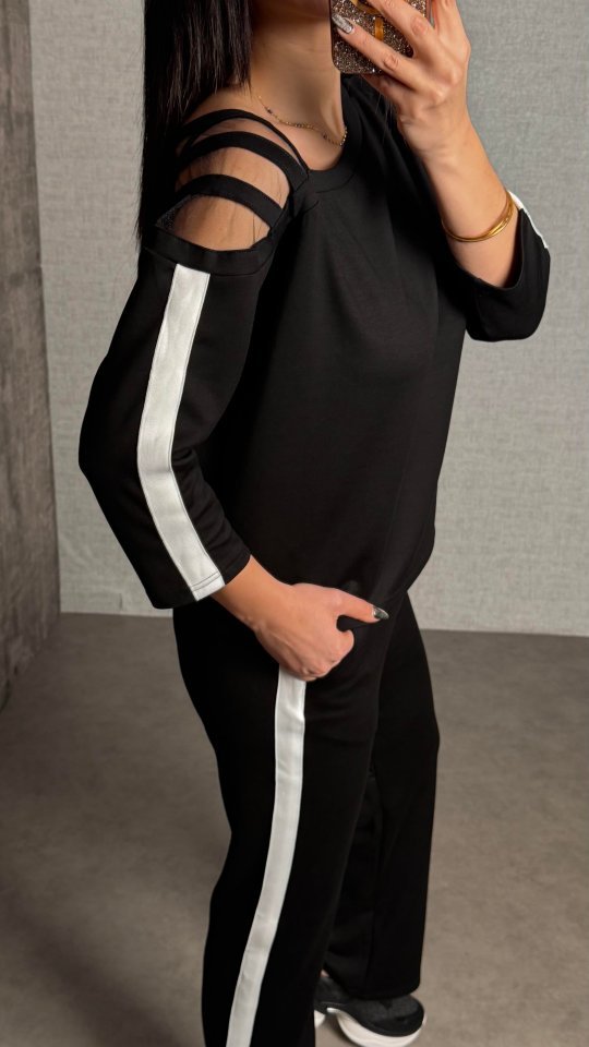 Kadın Uzun Kollu Kolu Tül Yanları şerit Detay Modal Ikili Takım