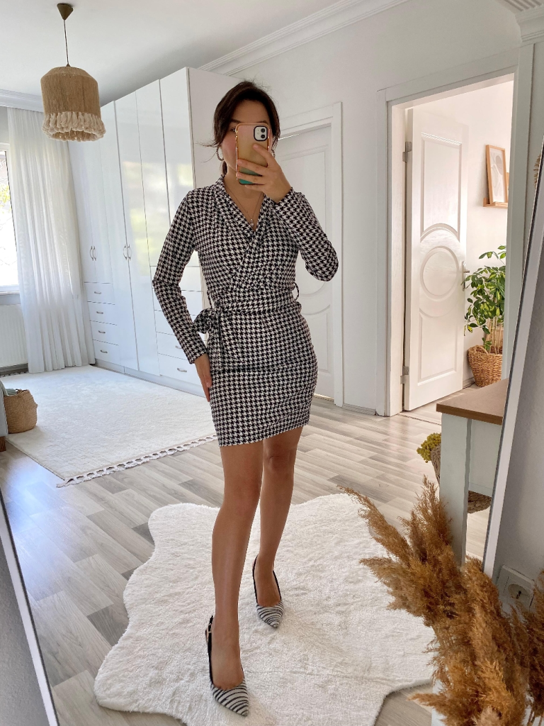 Kadın Uzun Kollu Kruvaze Yaka Bağlamalı Kemer Dalgıç Mini Boy Elbise Modelin Ölçüleri: Boy:165, Kg:55, Göğüs:90, Bel:72, Kalça: 100 Modelin üzerindeki ürün M/38 bedendir EK OZELLIKLER-Boş/Ek özellik YokTARZ-DigerYAKA-KruvazeUZUNLUK-MiniDESEN-KazayağıKOL UZUNLUK-Uzun KolTARZ-GündelikKALIP-Diger