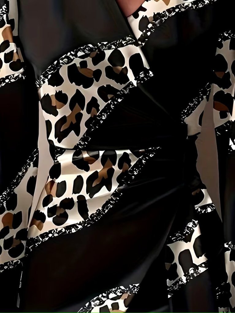Kadın Askılı Halka Detaylı Kruvaze Yakalı Desenli Süprem Kısa Elbise