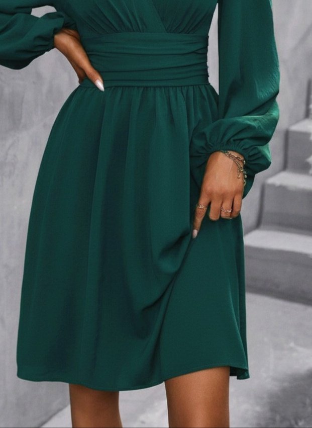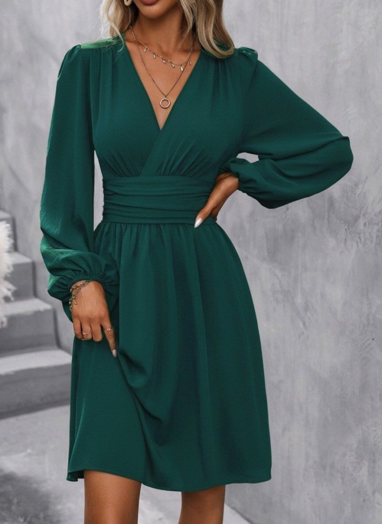 Kadın Uzun Kollu Kruvaze Yakalı Bel Korsajlı Mini Elbise