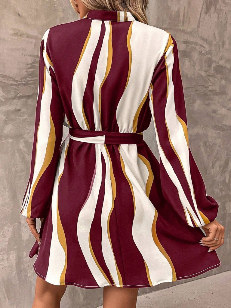 Kadın Uzun Kollu Kruvaze Yakalı Desenli Modal Mini Elbise