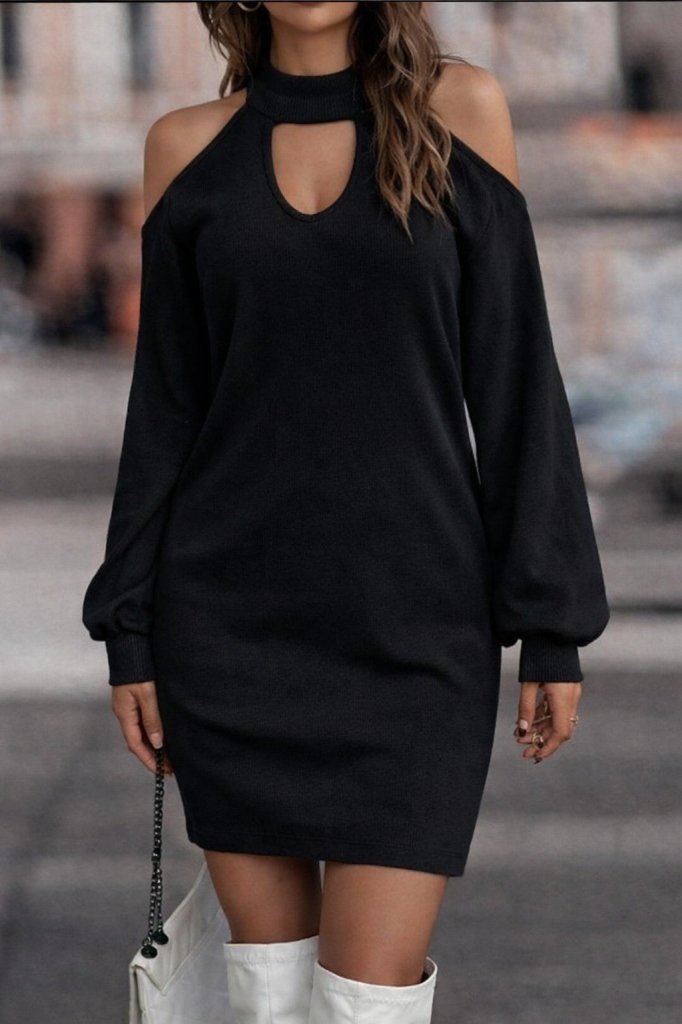 Kadın Uzun Kollu Omuzları Açık Boyundan şerit Detay Kaşkorse Elbise