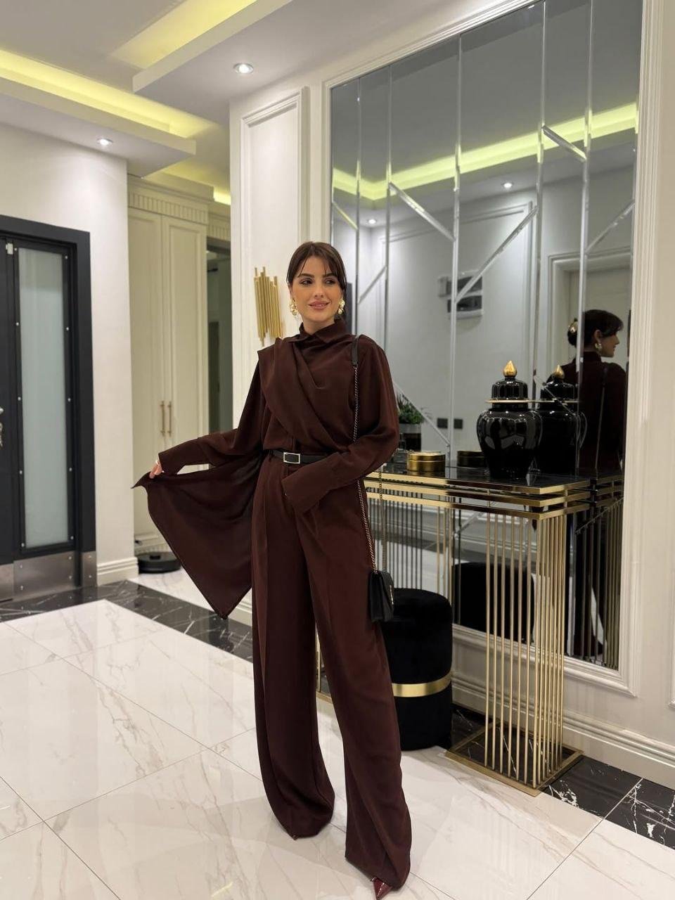 Kadın Uzun Kollu şal Detaylı Bluz Ve Pantolon Ikili Takım (kemer Dahil Değil)