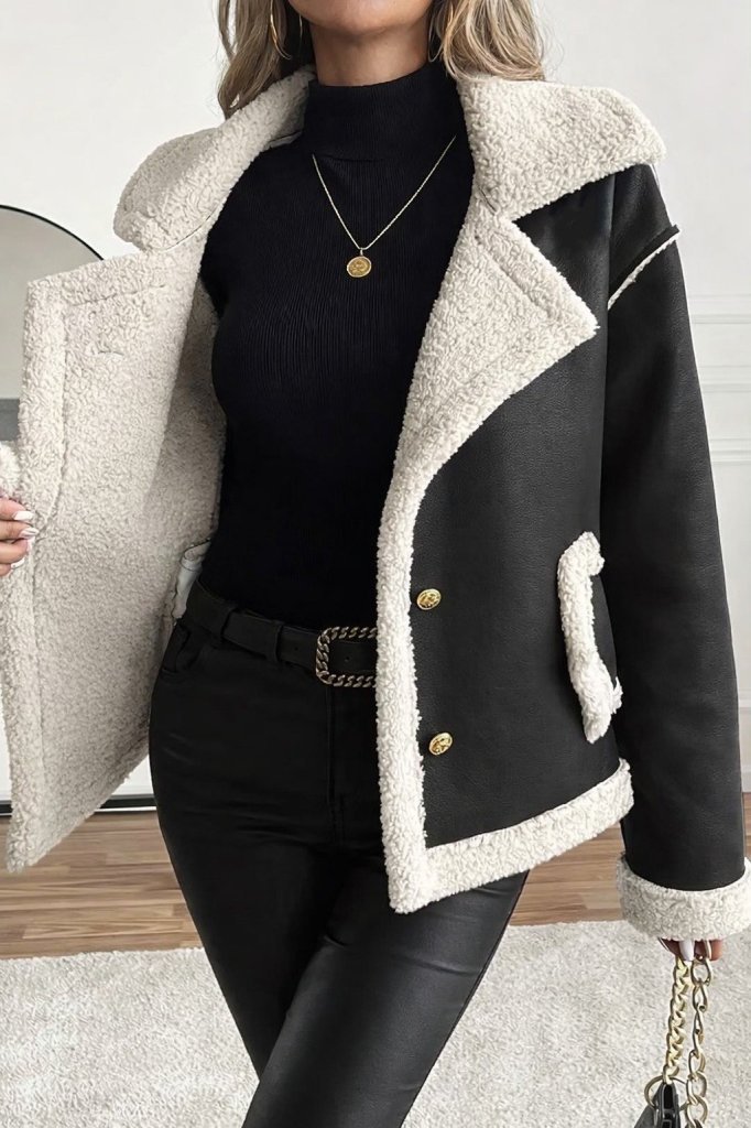 Kadın Uzun Kollu önden Düğmeli Kısa Süet Ceket