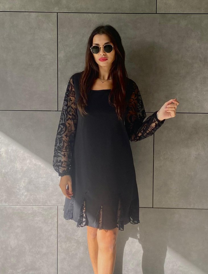 Kadın Uzun Kollu Yuvarlak Yaka Kol Ve Etek Ucu Dantelli Kısa Ithal Krep Elbise Modelin Ölçüleri: Boy:165, Kg:55, Göğüs:90, Bel:72, Kalça: 100 Modelin üzerindeki ürün M/38 bedendir TARZ-DiğerleriYAKA-Bisiklet/Yuvarlak YakaDESEN-DiğerleriKOL UZUNLUK-Uzun…
