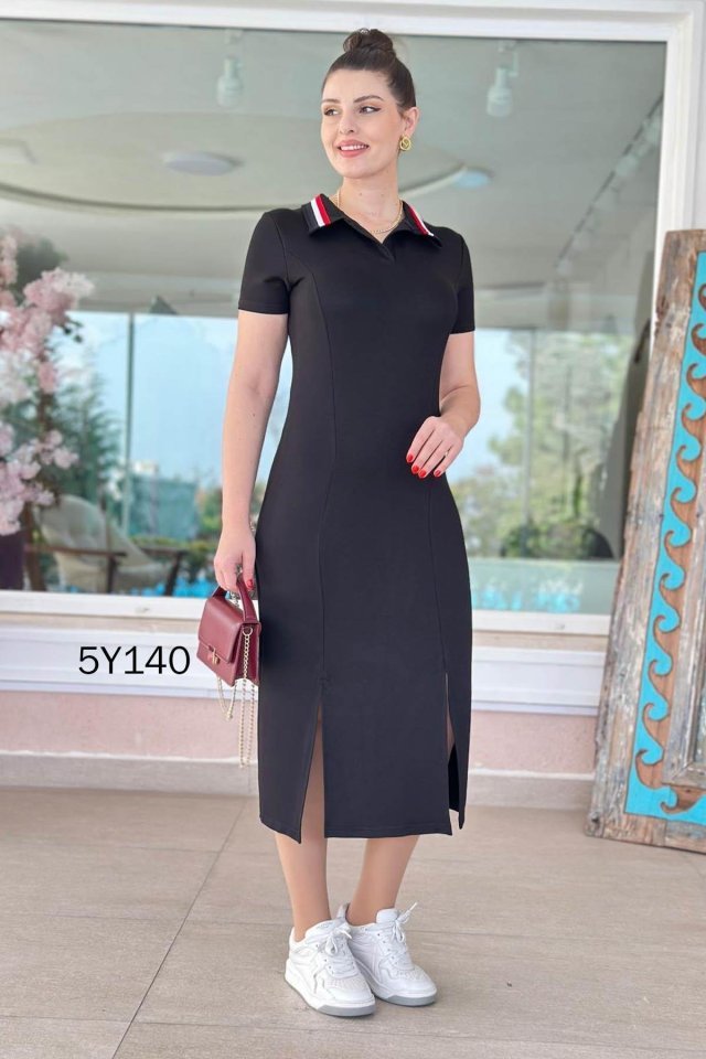 Kadın Yaka Ribanalı Çift Yırtmaçlı Elbise Modelin Ölçüleri: Boy:165, Kg:55, Göğüs:90, Bel:72, Kalça: 100 Modelin üzerindeki ürün M/38 bedendir
