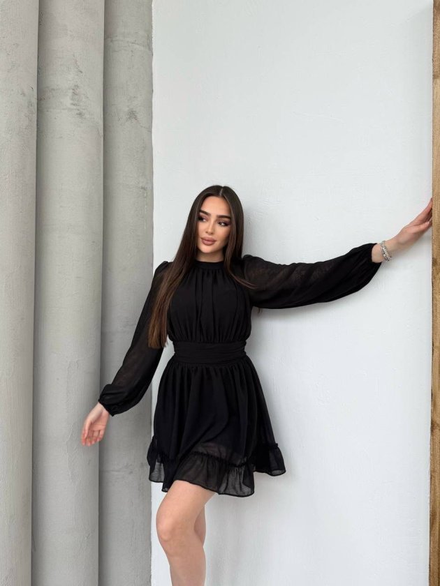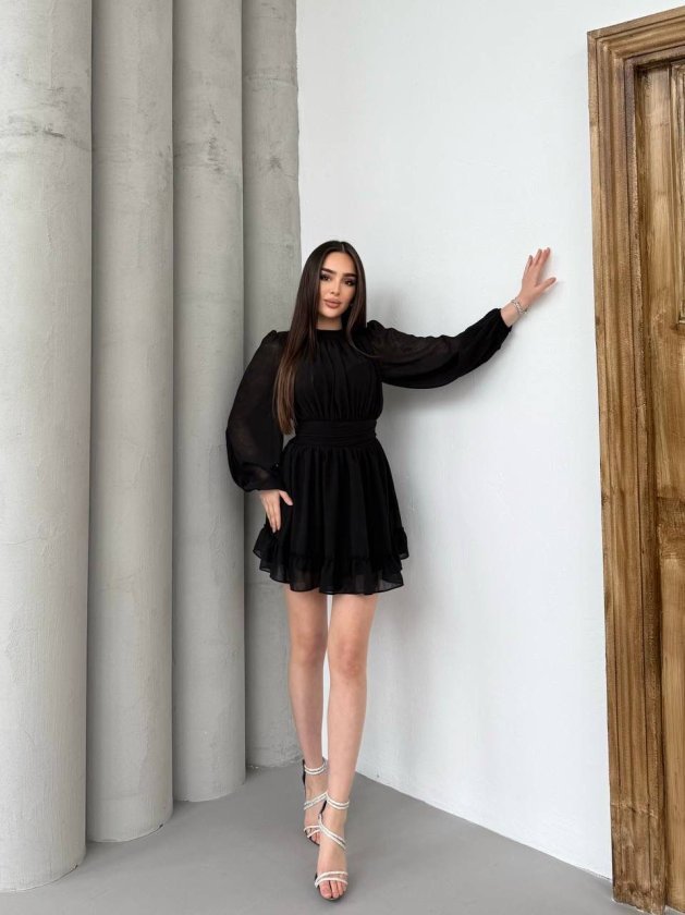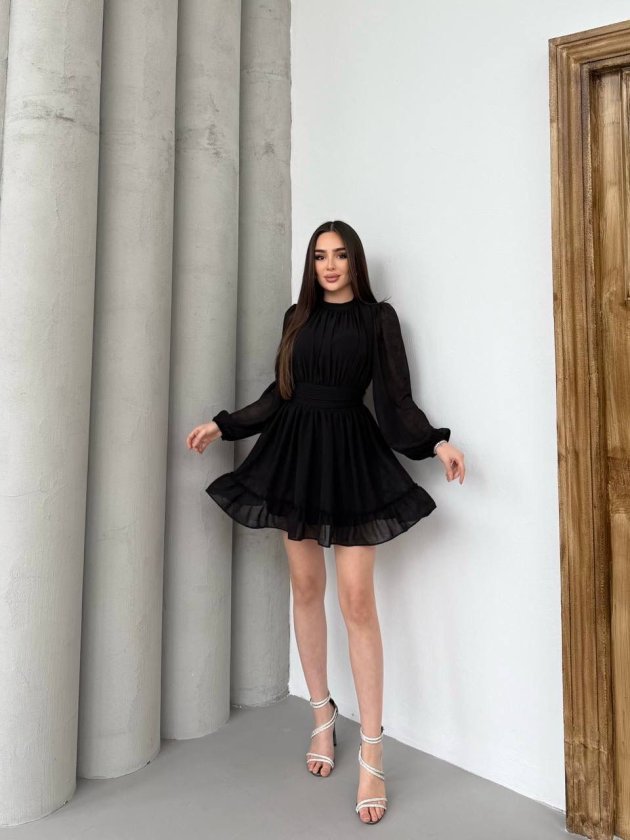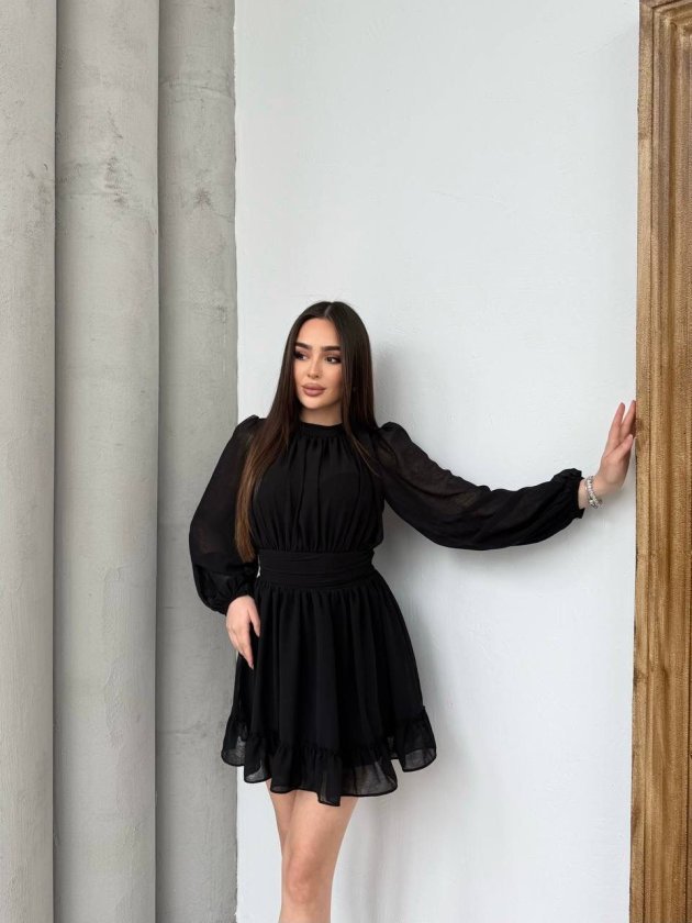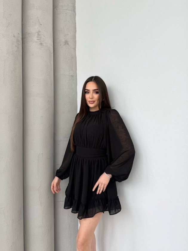 Kadın Yarım Balıkçı Yaka Kolları Transparan Astarlı Full şifon Elbise Modelin Ölçüleri: Boy:165, Kg:55, Göğüs:90, Bel:72, Kalça: 100 Modelin üzerindeki ürün M/38 bedendir