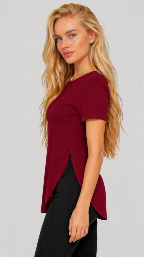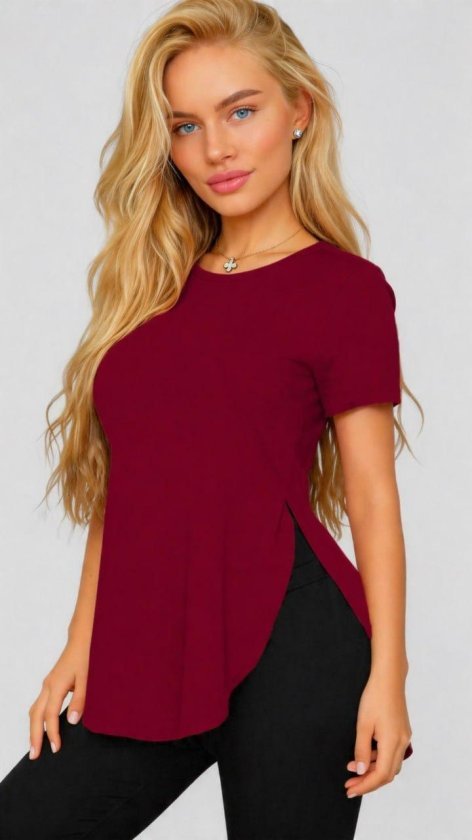 Kadın Yırtmaç Detaylı Viskon Kumaş Bluz Modelin Ölçüleri: Boy:165, Kg:55, Göğüs:90, Bel:72, Kalça: 100 Modelin üzerindeki ürün M/38 bedendir