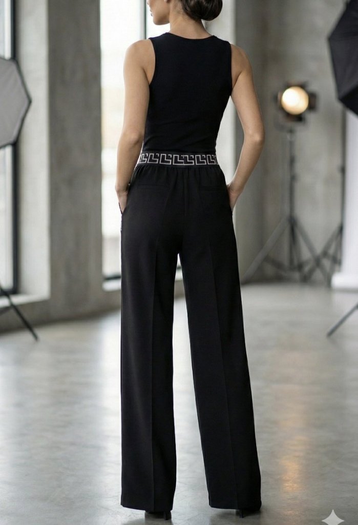 Kadın Yüksek Bel Beli Lastikli Genç Paçalı Ithal Krep Pantolon