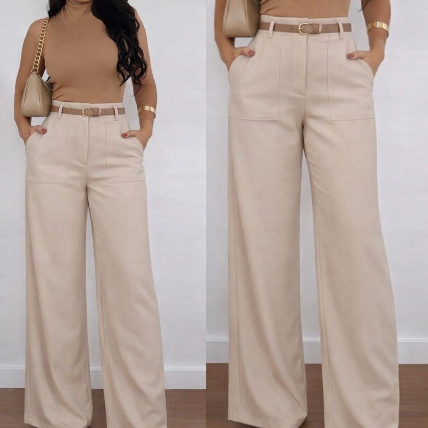 Kadın Yüksek Bel Geniş Paça Detaylı Cepli Ithal Krep Pantolon Modelin Ölçüleri: Boy:165, Kg:55, Göğüs:90, Bel:72, Kalça: 100 Modelin üzerindeki ürün M/38 bedendir DESEN-DiğerleriBEL OZELLIK-Yüksek BelEK OZELLIKLER-Boş/Ek özellik YokKALIP-DigerBACAK BOYU-Uzun