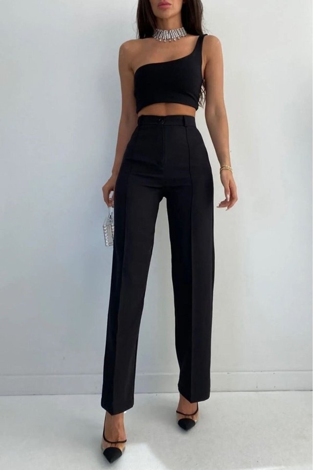 Kadın Yüksek Bel Beli Lastikli Genç Paçalı Ithal Krep Pantolon