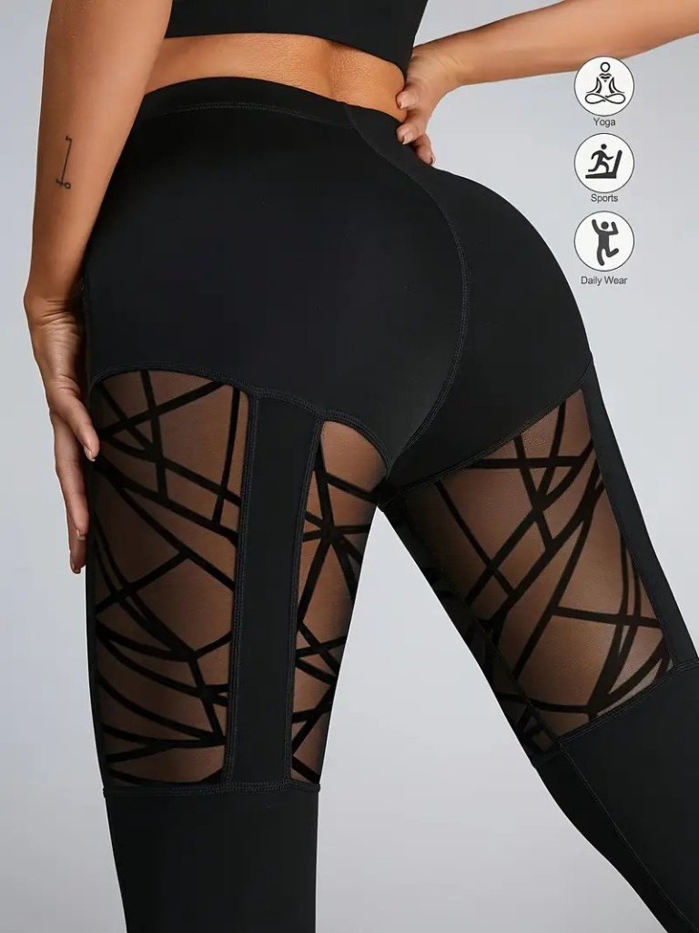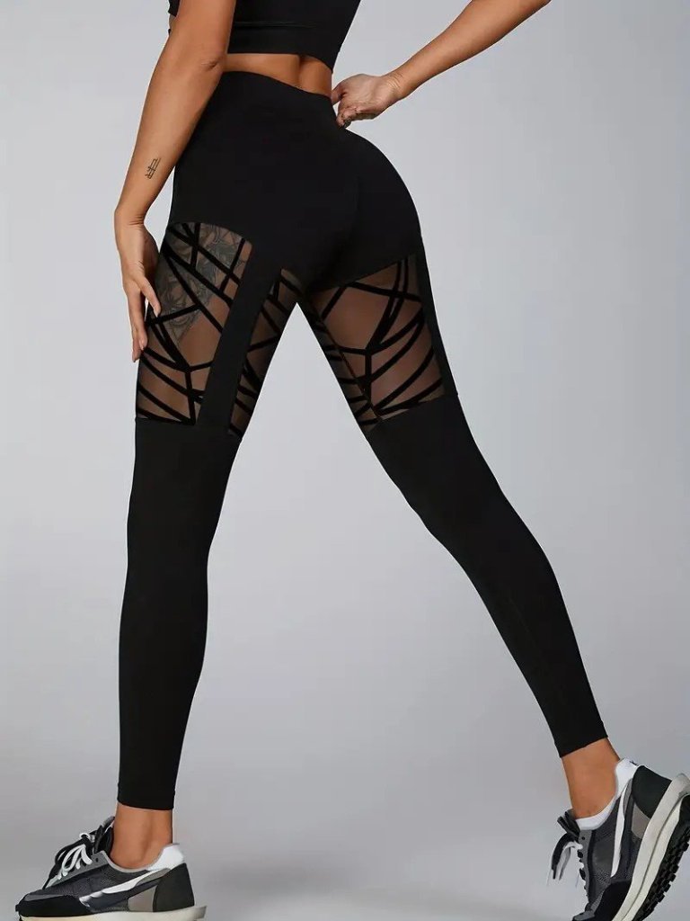 Kadın Yüksek Bel Tül Detaylı Spor Tayt
