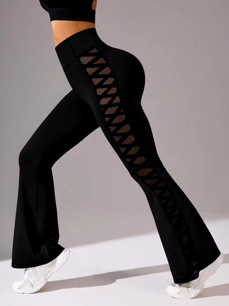Kadın Yüksek Bel Yanları çapraz Tül Detaylı Dalgıç Tayt