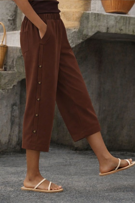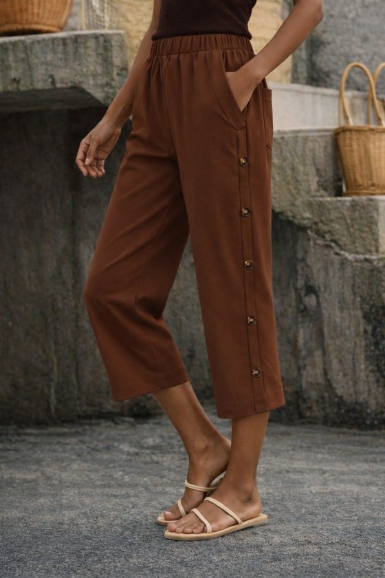 Kadın Yüksel Bel Lastikli Yandan Dügme Detaylı Midi Pantolon