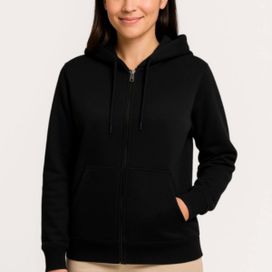 Üç İplik Kapüşonlu Tam Fermuarlı Kanguru Çepli SweatShirt Hoodie – Siyah