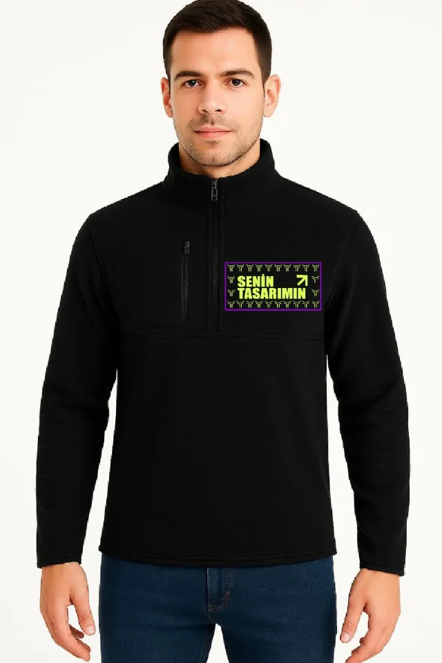 Ön Arka Polar Kazak Dik Yaka – Siyah