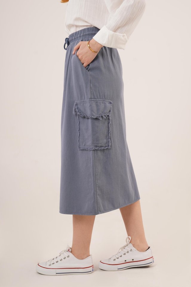 Ön Yırtmaçlı Cep Detaylı İndigo Etek
