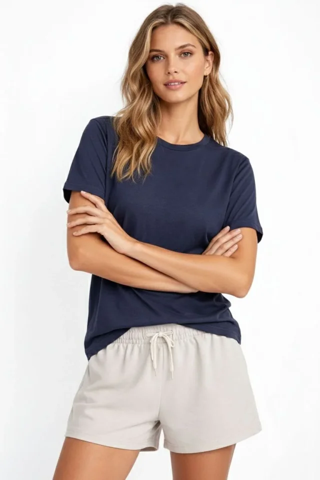 Osy Modal Yumuşak Dokulu Kumaş Bisiklet Yaka T-shirt – İndigo