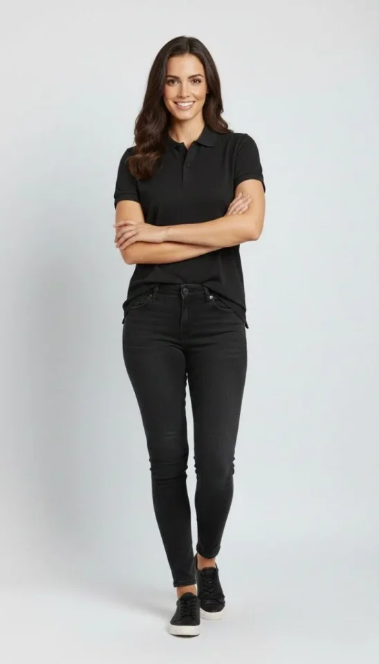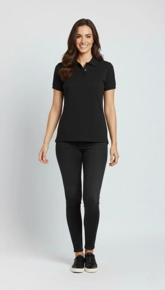 Pike Kumaş Düğmeli Yaka Regular Rahat Günlük Kısa Kol Tişört T-shirt – Siyah Modelin Ölçüleri: Boy:165, Kg:55, Göğüs:90, Bel:72, Kalça: 100 Modelin üzerindeki ürün M/38 bedendir