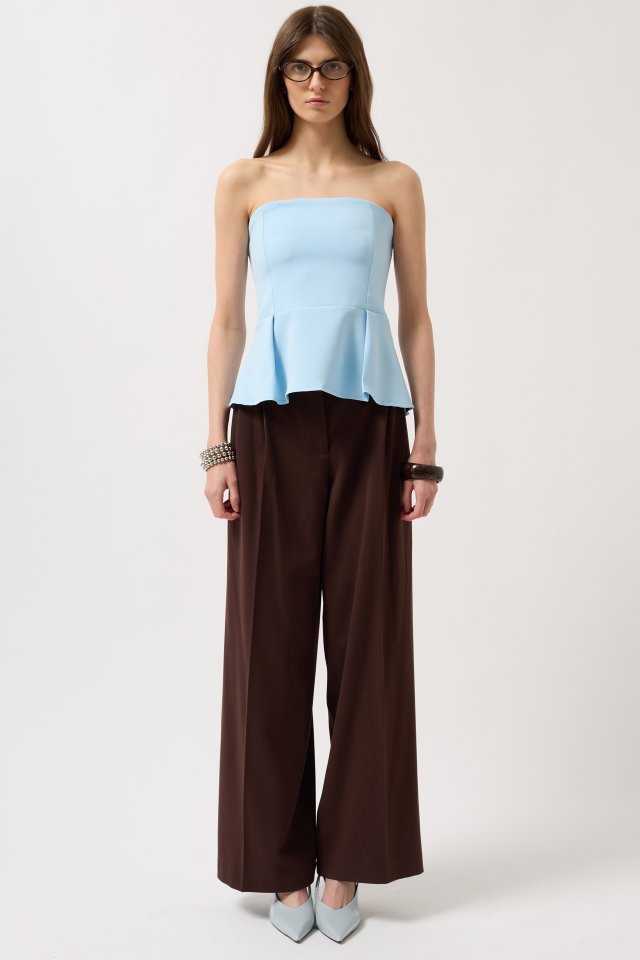 Pileli Straplez Bluz