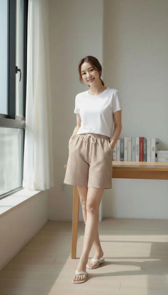 Pötikareli Şort – Beli Lastikli Bağcıklı, Cepli, Rahat Kesim Günlük Yazlık Şort – Bej