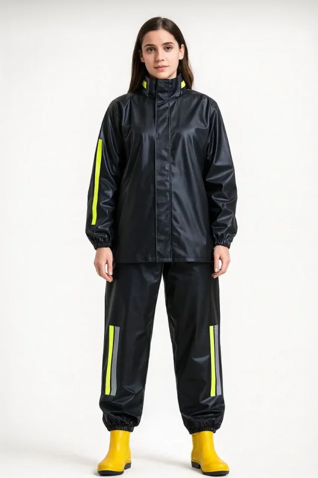 Premium Motorcu Kurye Yağmurluk Takım Su Geçirmez PVC Kumaş Reflektörlü TÜBİTAK Onaylı – Siyah
