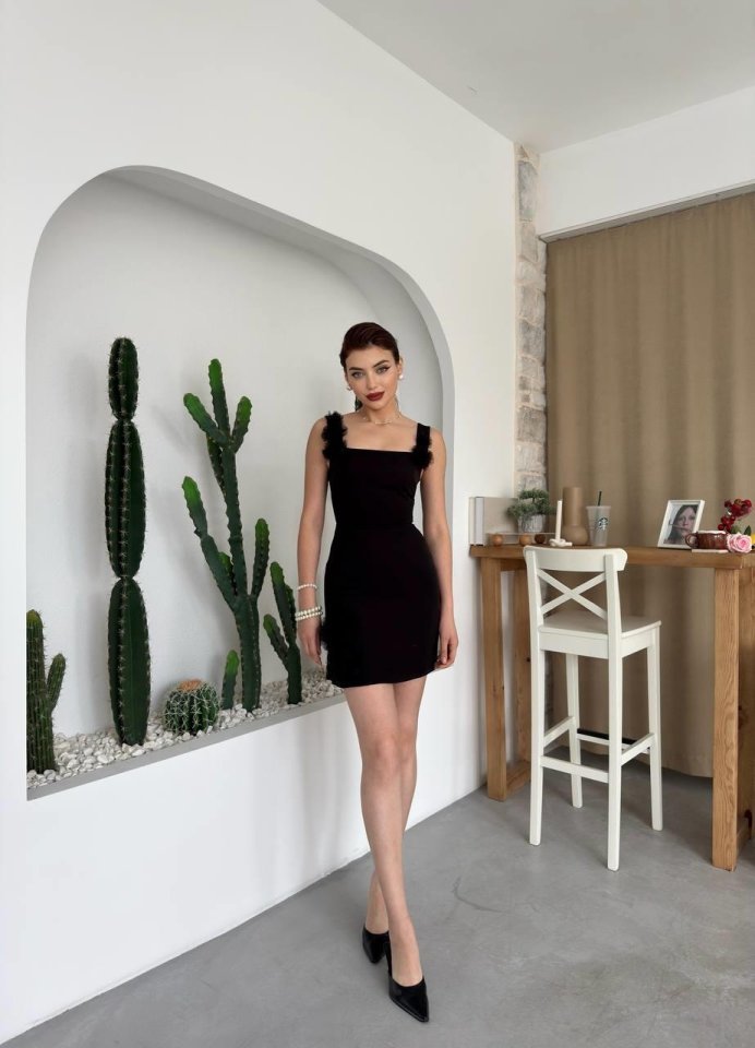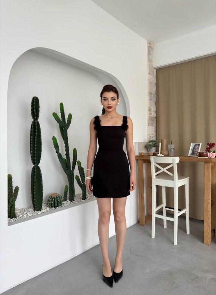 Ques Mini Elbise Modelin Ölçüleri: Boy:165, Kg:55, Göğüs:90, Bel:72, Kalça: 100 Modelin üzerindeki ürün M/38 bedendir