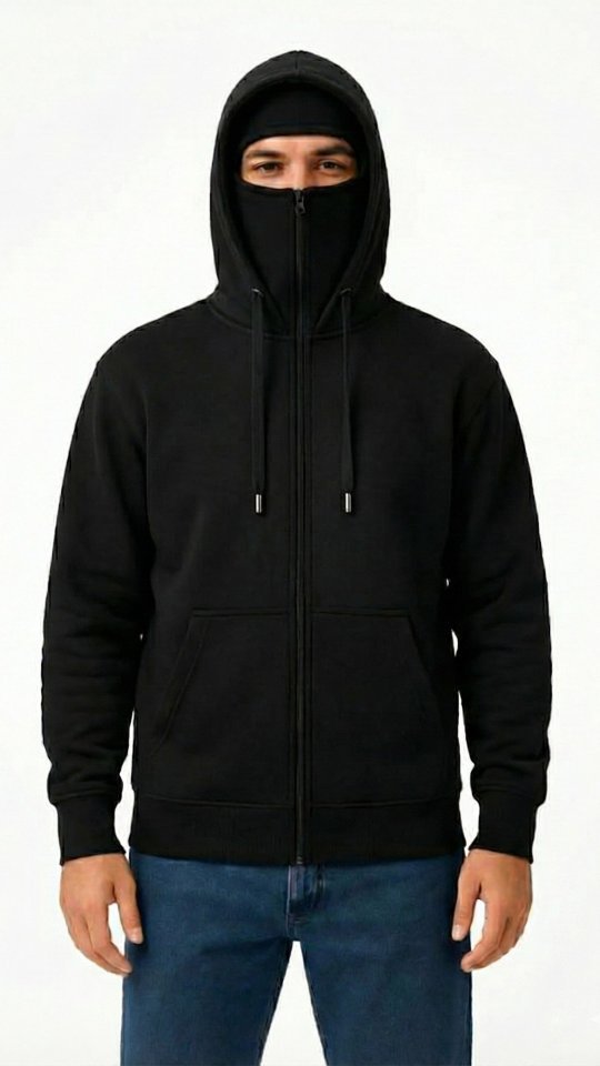 Samuray Ninja Çift Kapüşonlu ZIP Fermuarlı Kanguru Cepli Tam Fermuarlı Hoodie Sweatshirt – Siyah