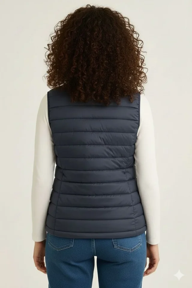 Şişme Fermuarlı Yelek Su Itici Kapitone Astarlı Kumaş Cepli Hafif Kışlık Spor Rahat Kalıp – Lacivert
