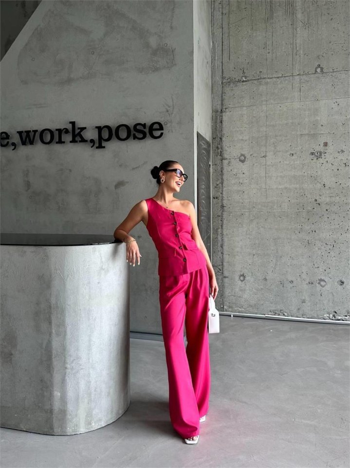 TEK KOL YELEK – PANTOLON TAKIM ATLAS – Fuşya