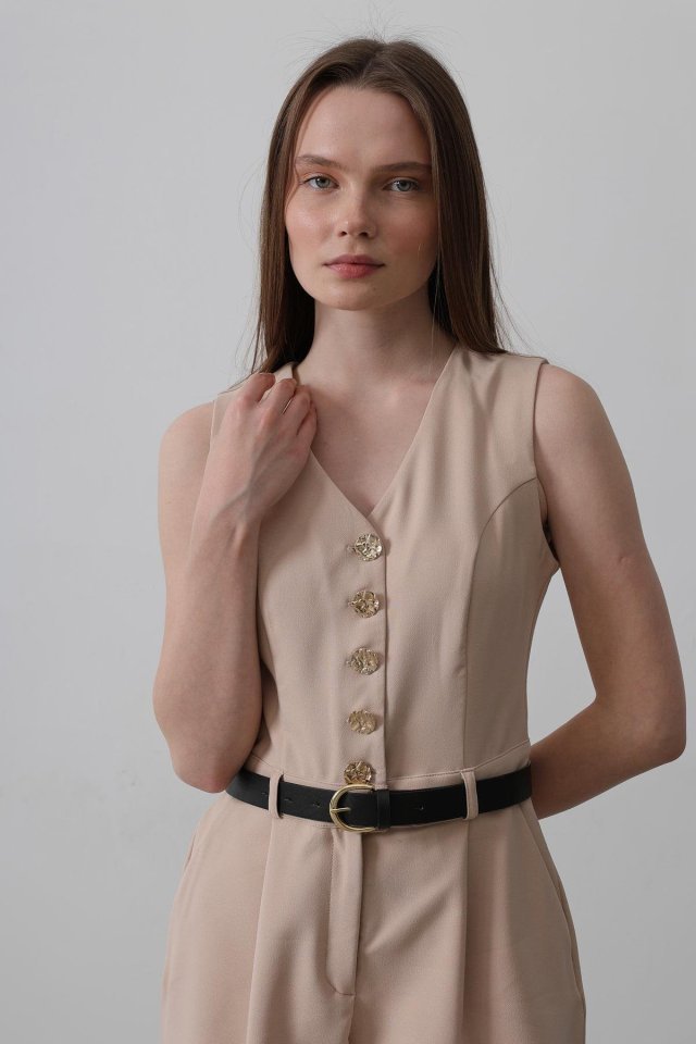 TULUM – Taş Modelin Ölçüleri: Boy:165, Kg:55, Göğüs:90, Bel:72, Kalça: 100 Modelin üzerindeki ürün M/38 bedendir