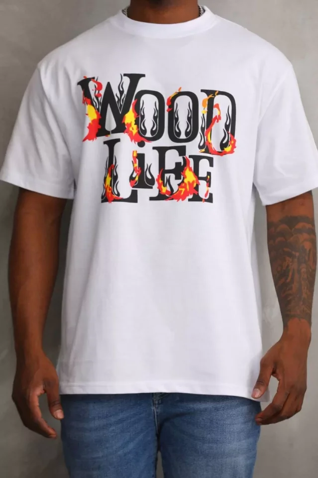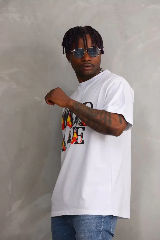 Unisex Baskılı Oversize T-Shirt – Beyaz
