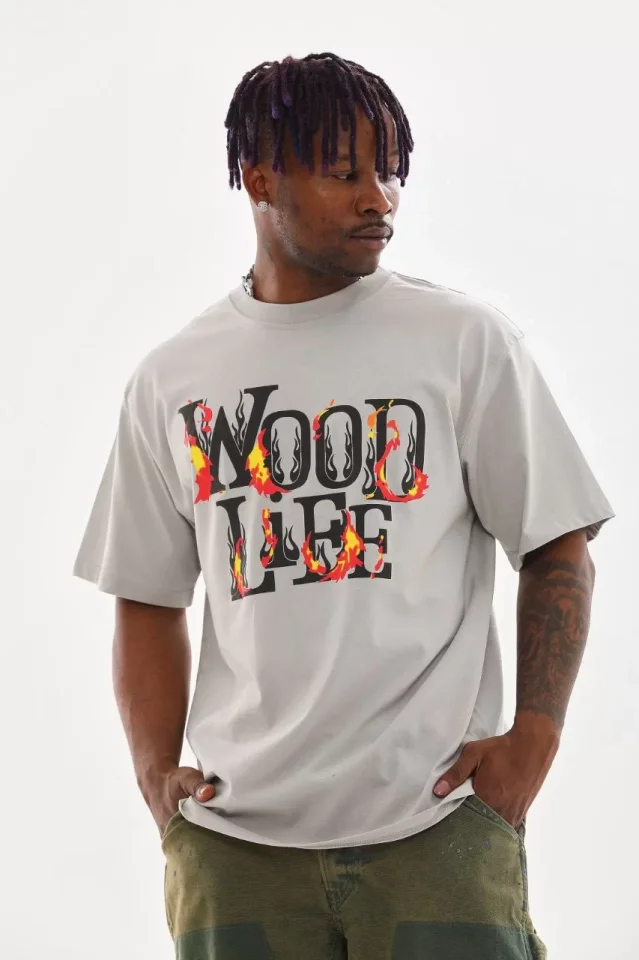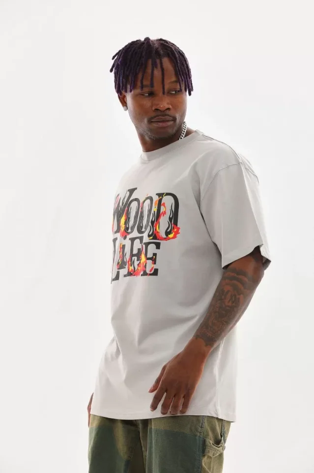 Unisex Baskılı Oversize T-Shirt – Gri