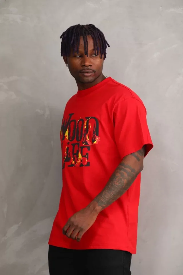 Unisex Baskılı Oversize T-Shirt – Kırmızı