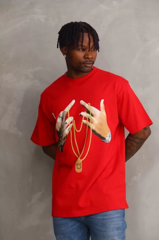 Unisex Baskılı Oversize T-Shirt – Kırmızı