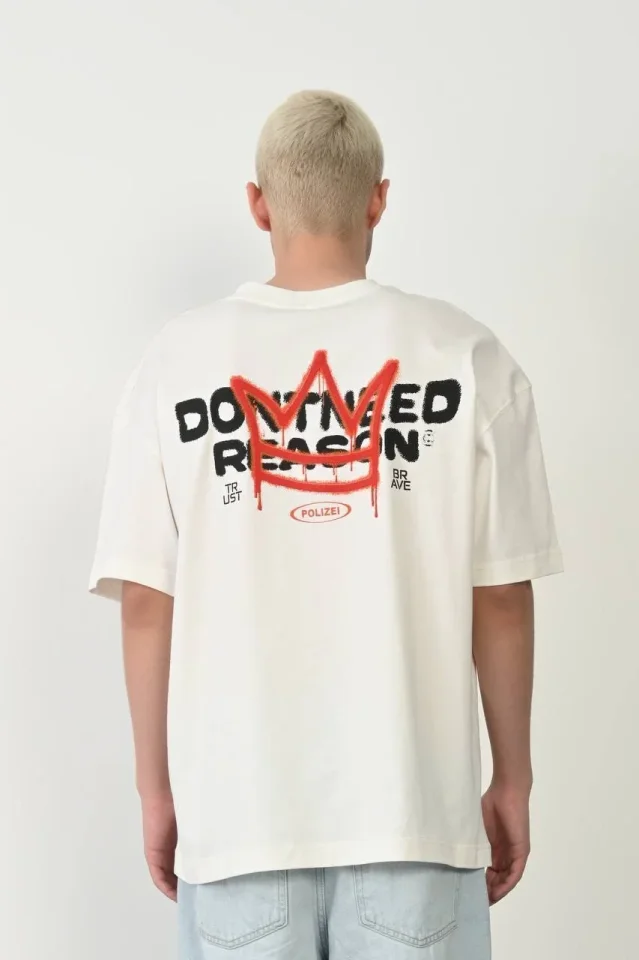Erkek Oversize Tişört – Beyaz 24/1 Penye Kumaş, Bisiklet Yaka, Ön – Arka Baskılı, Streetwear Tarzı Rahat Büyük Kalıp T-Shirt- Beyaz