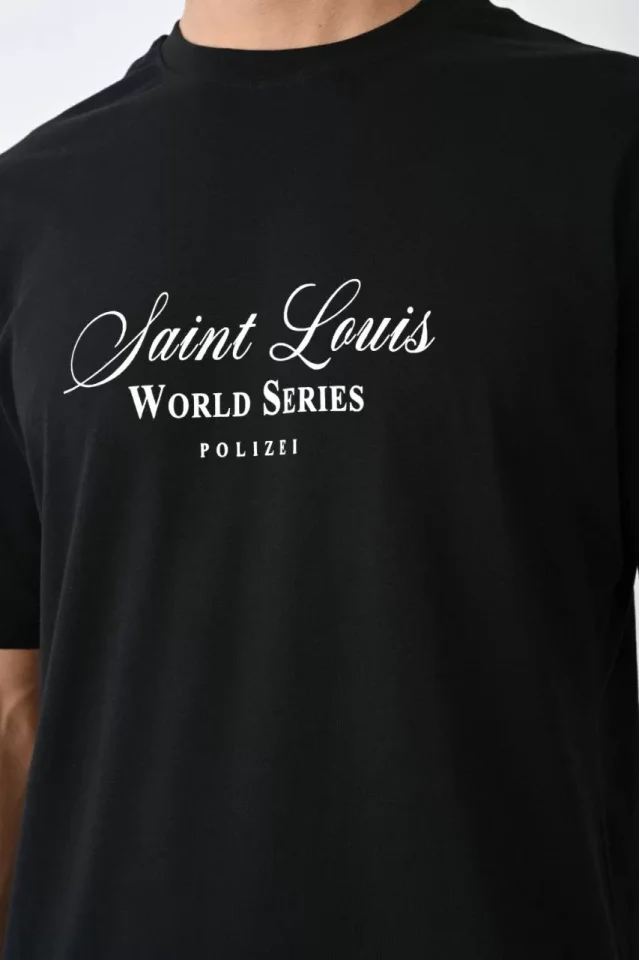 Unisex Bisiklet Yaka Baskılı Oversize T-Shirt – Siyah