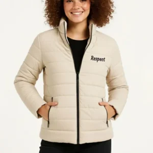 Mikro Su İtici Kapitone Baskılı Astarlı Fermuarlı Bomber Mont – Bej