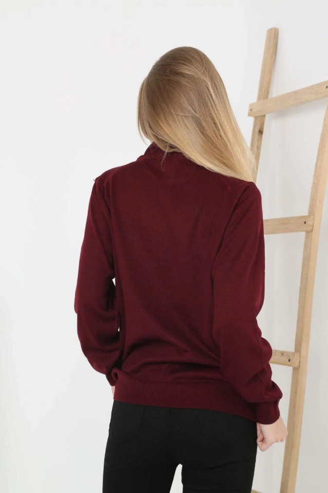 Yarım Boğaz Triko Kazak Yumuşak Dokulu Pamuklu Ince Dokuma, Uzun Kollu Rahat Regular Kalıp – Bordo