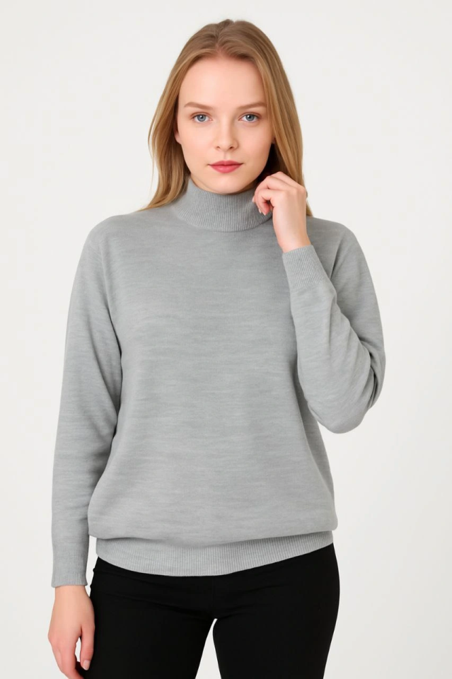 Yarım Boğaz Triko Kazak Yumuşak Dokulu Pamuklu Ince Dokuma, Uzun Kollu Rahat Regular Kalıp – Gri