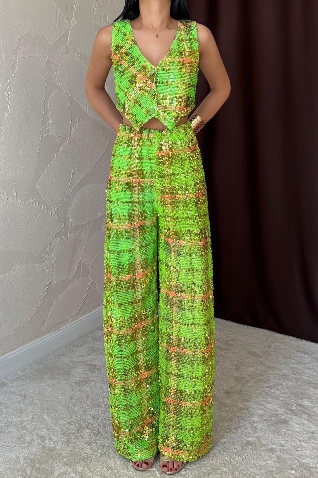 Yeşil Pullu Yelek Ve Pantolon Takım