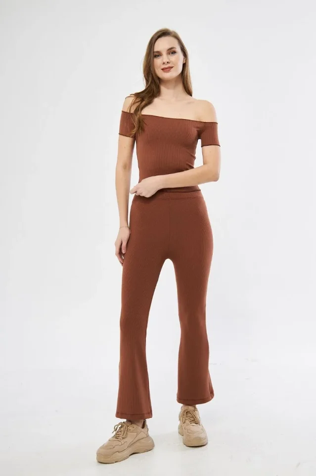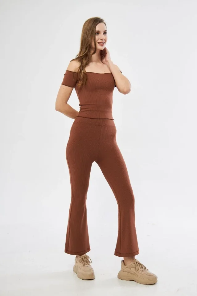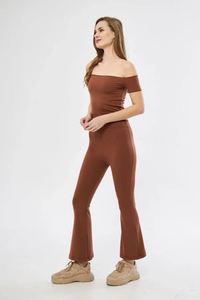 Yüksel Bel Fitilli İspanyol Paça Tayt – Kahve