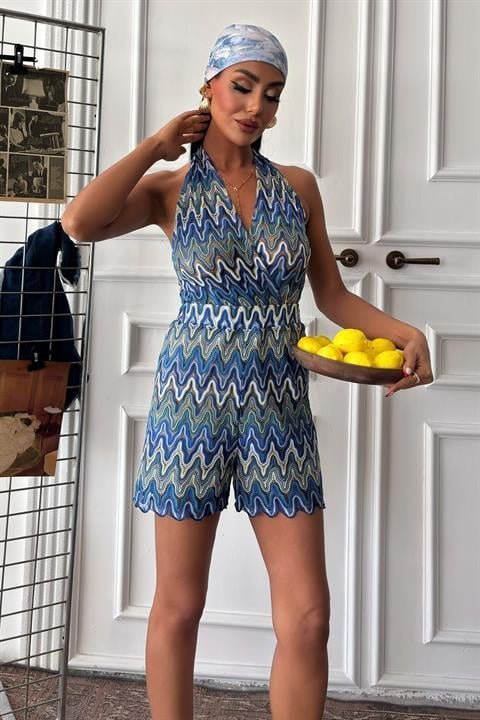 Zikzak Desenli Multi Renk Geçişli Mini Tulum 1365